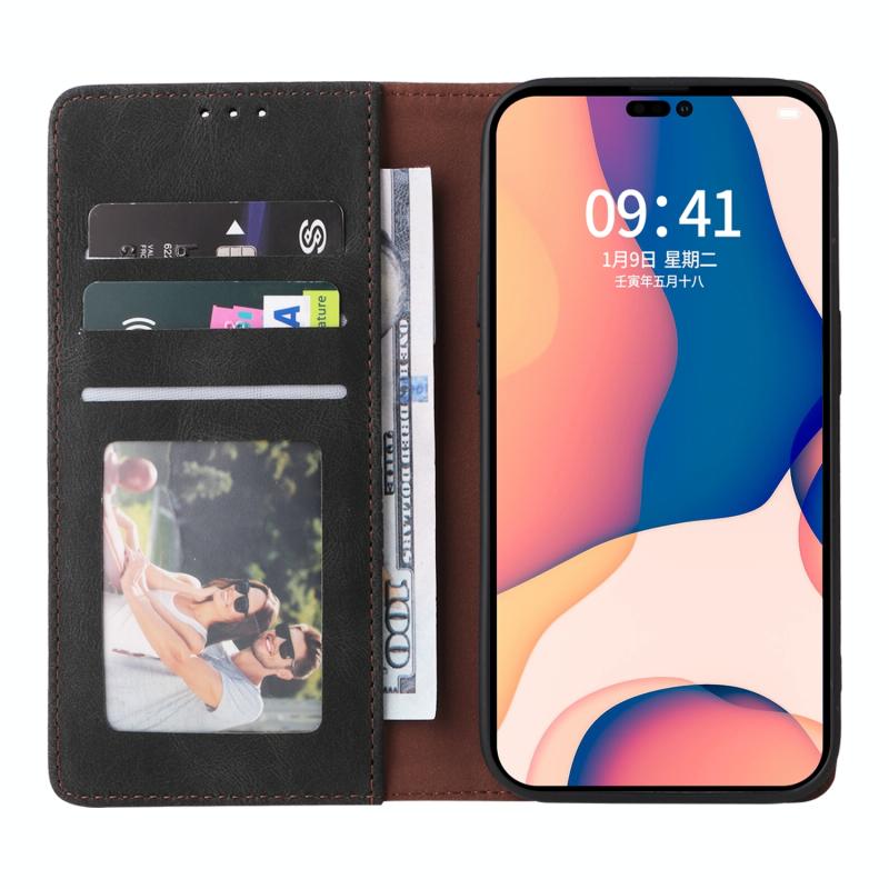 For iPhone 14 Pro Max Simple Suction Closure Horizontal Flip Leather Case (Black)