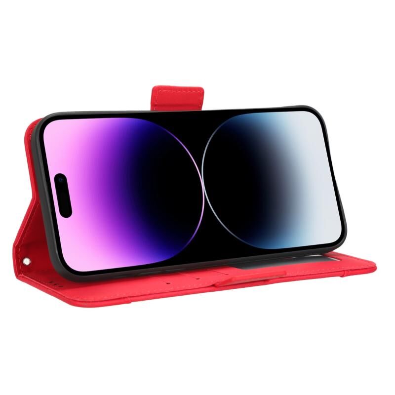 Θήκη τηλεφώνου από δέρμα με υφή μοσχαριού, αίσθηση δέρματος για iPhone 14 Pro Max με θήκες καρτών (Ροζ)