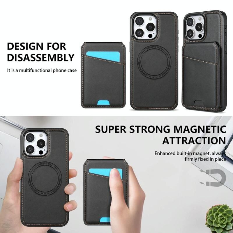 Θήκη κινητού για iPhone 14 Pro Max με αίσθηση δέρματος, αποσπώμενη τσέπη για κάρτες και MagSafe (Μαύρο)