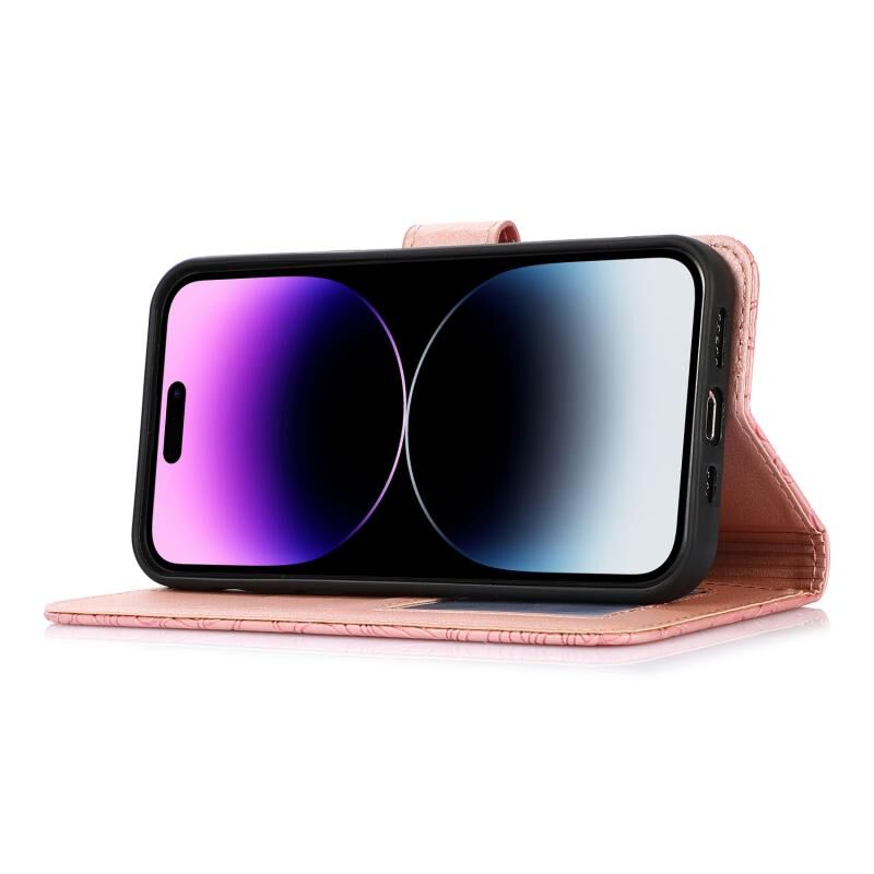 Θήκη δέρματος οριζόντια με ανάγλυφο ηλιοτρόπιο και αίσθηση δέρματος για iPhone 14 Pro Max (Μωβ)