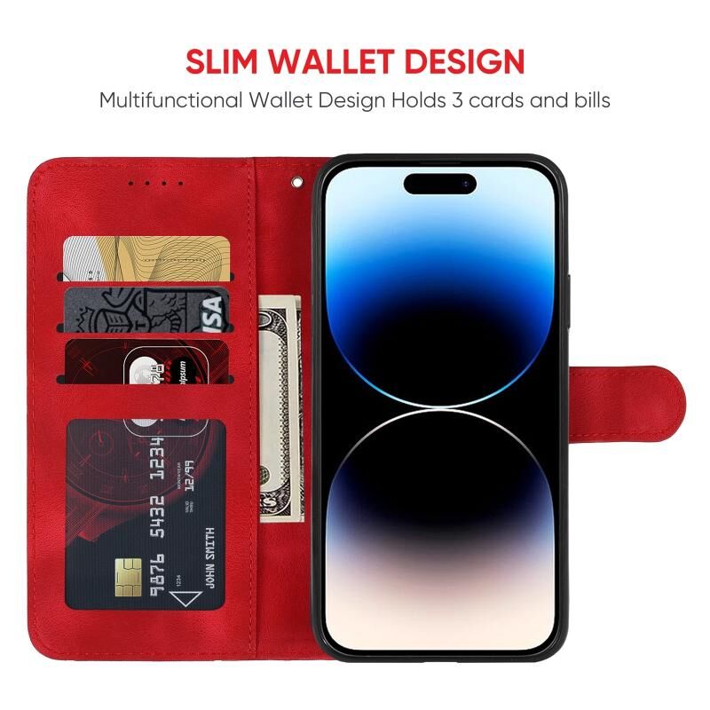 Θήκη τηλεφώνου δερμάτινη με γεωμετρικά σχέδια και αίσθηση δέρματος για iPhone 14 Pro Max (Κόκκινο)