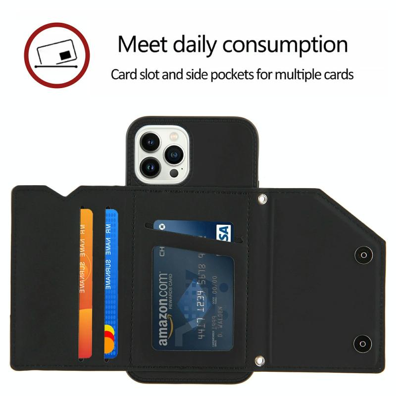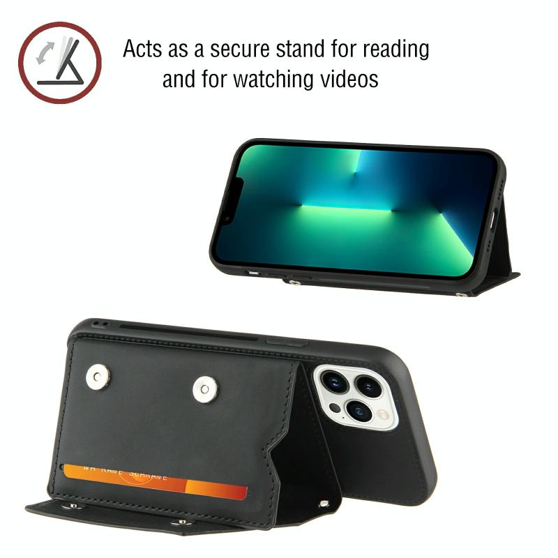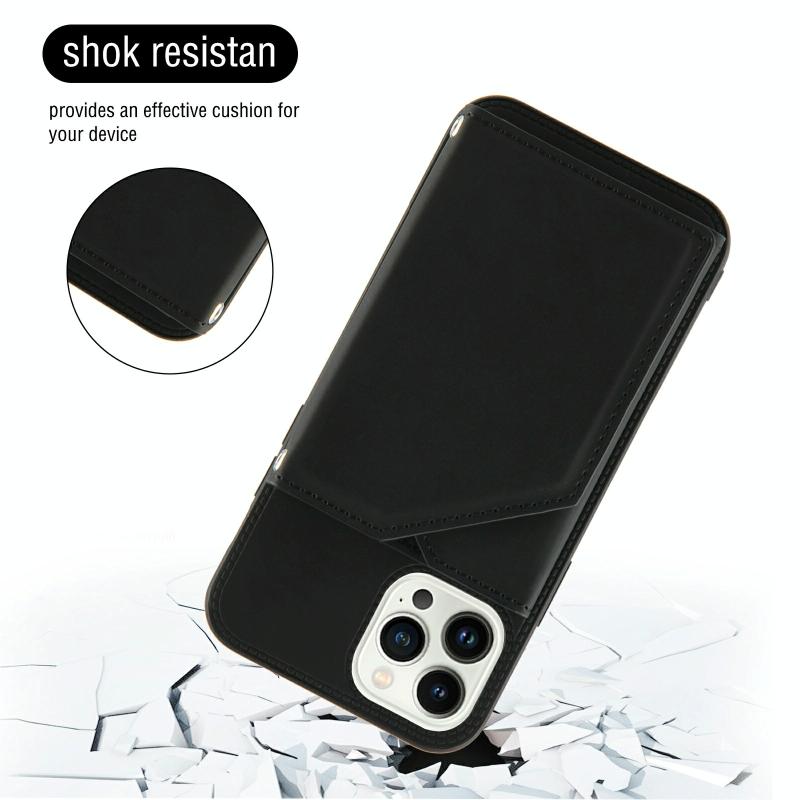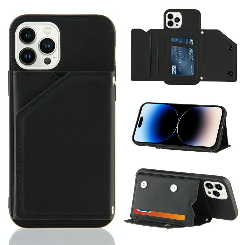 Θήκη για iPhone 14 Pro Max με αίσθηση δέρματος, PU + TPU + PC, αντικραδασμική (Μαύρο)