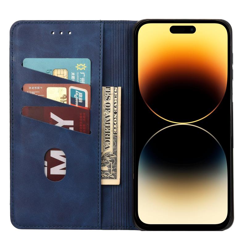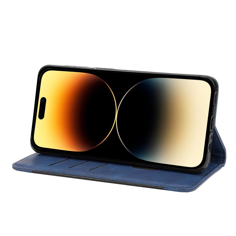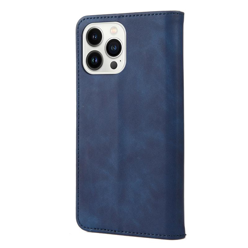 For iPhone 14 Pro Max Skin Feel Splicing Leather Phone Case (Blue)
