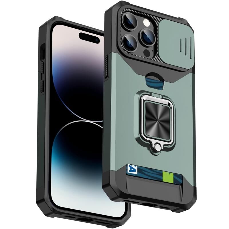 Θήκη τηλεφώνου για iPhone 14 Pro Max με συρόμενο προστατευτικό κάμερας, θήκη καρτών, δακτύλιο στήριξης (Μαύρο)