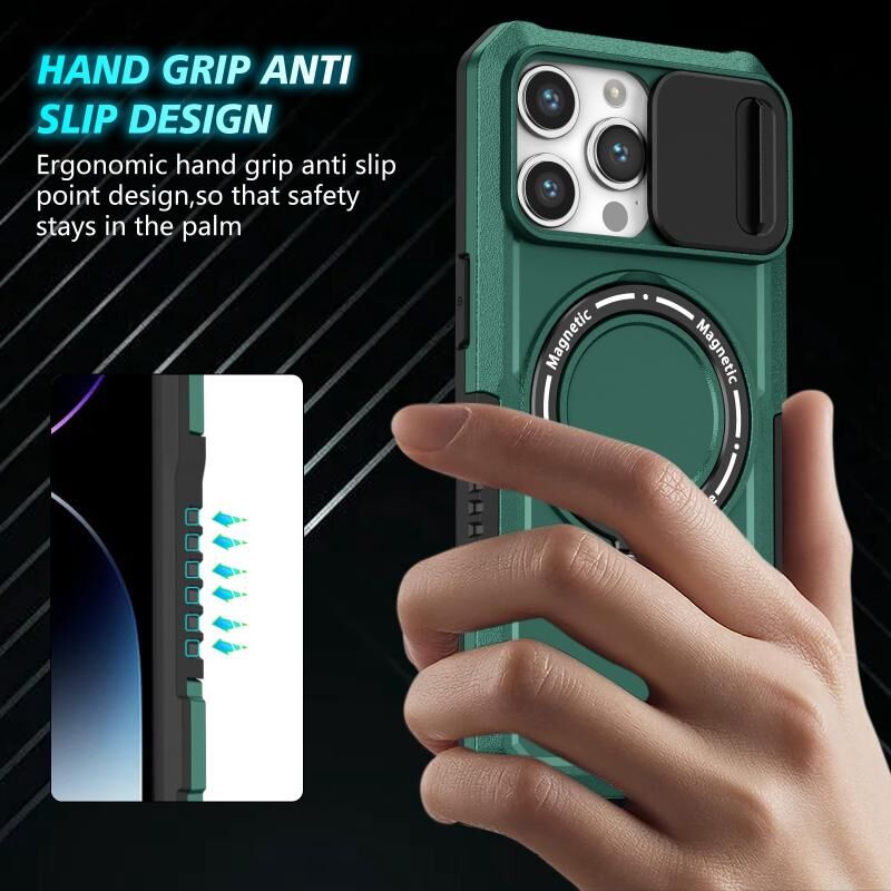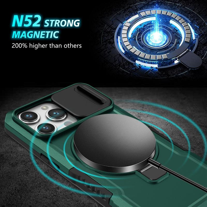 Για iPhone 14 Pro Max Θήκη TPU με Σχέδιο Camshield & MagSafe (Βαθύ Πράσινο)