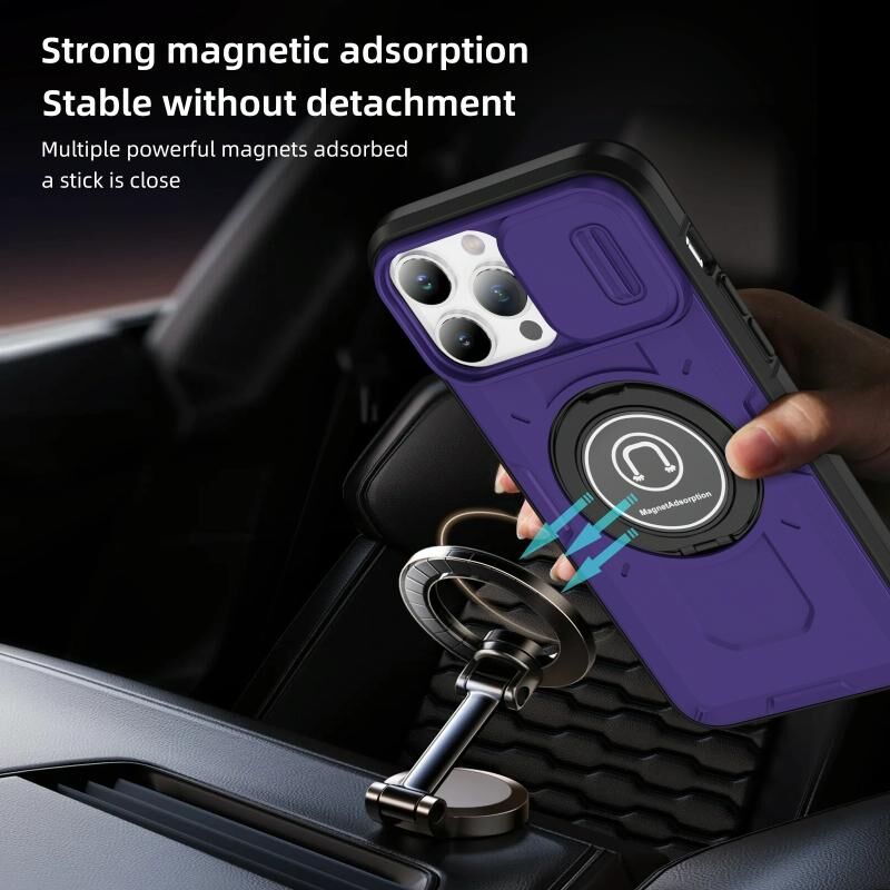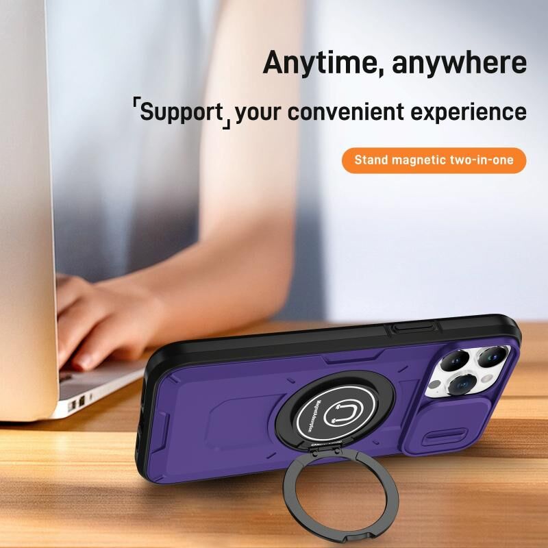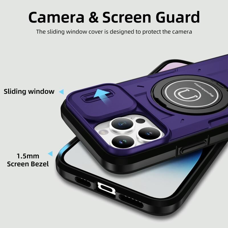 For iPhone 14 Pro Max Sliding Camshield TPU Hybrid PC Magnetic Holder Phone Case(Purple)