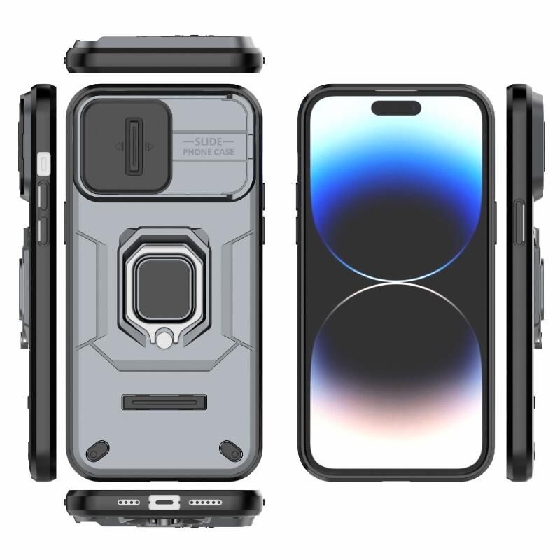 Θήκη κινητού τηλεφώνου για iPhone 14 Pro Max με συρόμενο προστατευτικό κάμερας Camshield, κατασκευασμένη από TPU + PC, ανθεκτική σε κρούσεις με βάση στήριξης (Μαύρο)