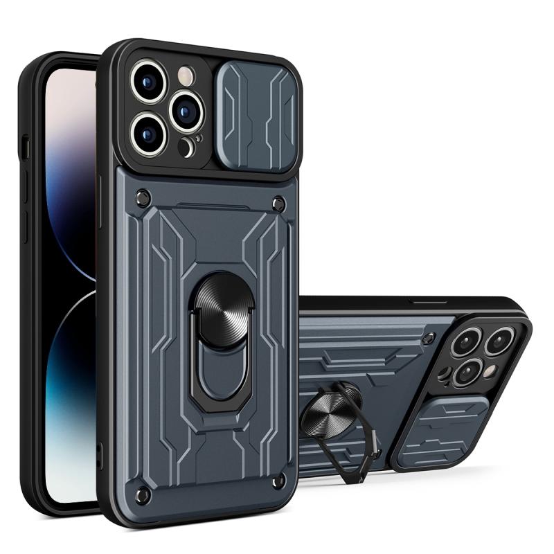 Θήκη κινητού τηλεφώνου για iPhone 14 Pro Max με συρόμενο προστατευτικό κάμερας Camshield, κατασκευασμένη από TPU+PC με υποδοχή κάρτας (Περλέ Λευκό). (Γκρι)