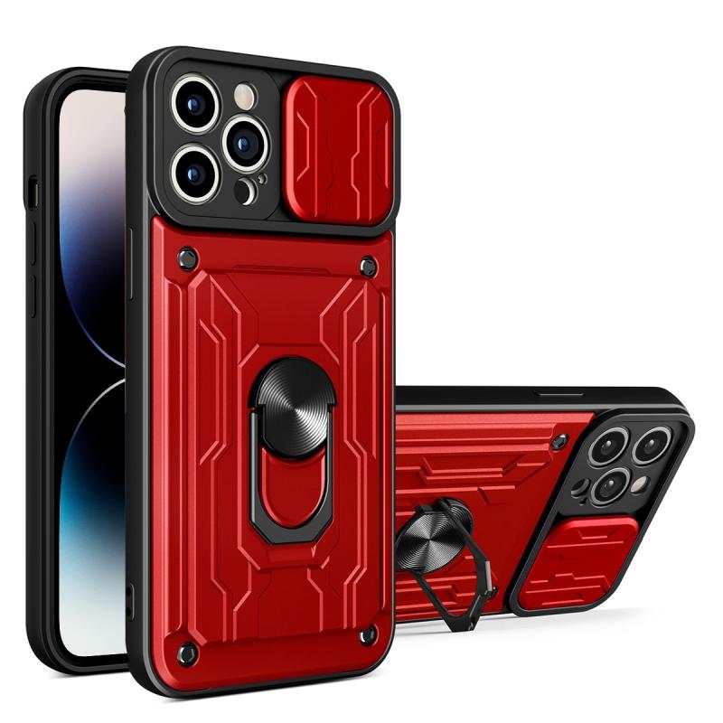 Θήκη κινητού τηλεφώνου για iPhone 14 Pro Max με συρόμενο προστατευτικό κάμερας Camshield, κατασκευασμένη από TPU+PC με υποδοχή κάρτας (Περλέ Λευκό). (Κόκκινο)