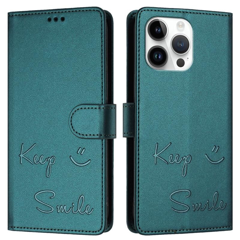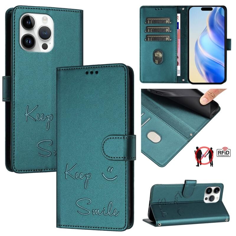 Θήκη τηλεφώνου από δέρμα με ανάγλυφο χαμόγελο και προστασία RFID για iPhone 14 Pro Max (Ροζ)