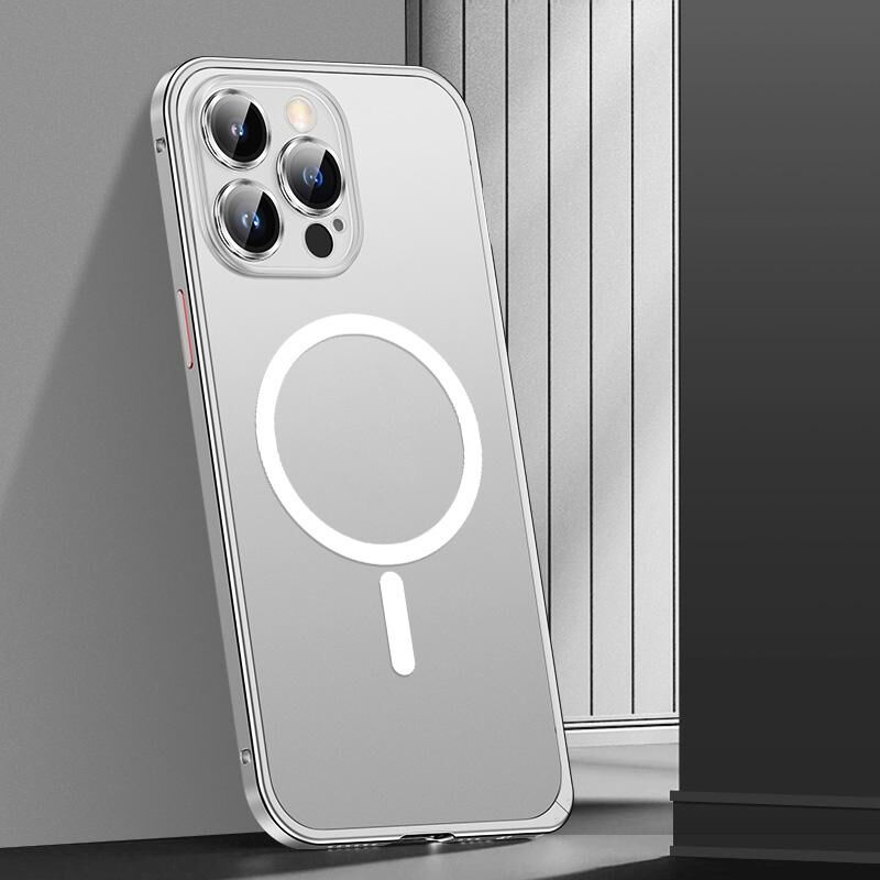 For iPhone 14 Pro Max Spring Buckle Metal Frosted Magsafe Phone Case(Silver)