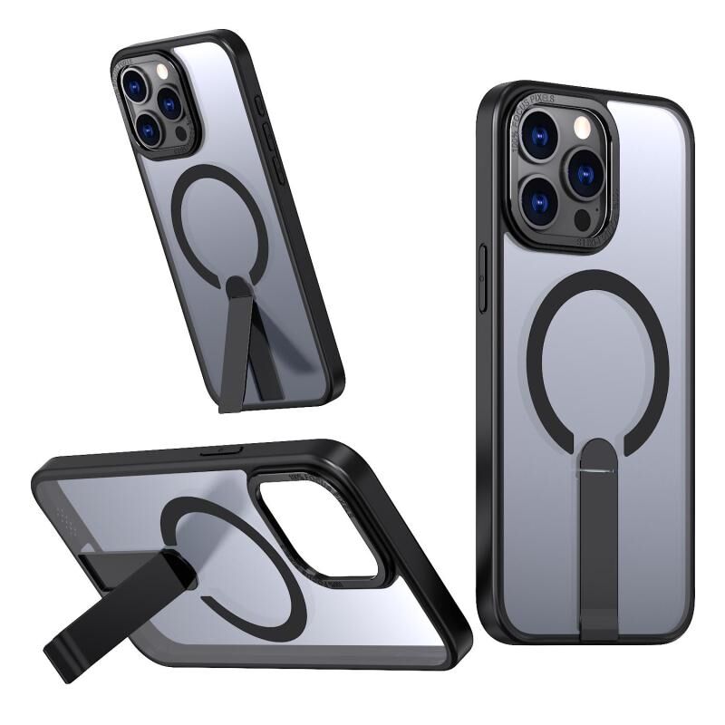 For iPhone 14 Pro Max Star Shine Series TPU + PC MagSafe Phone Case with Fold Holder(Black)