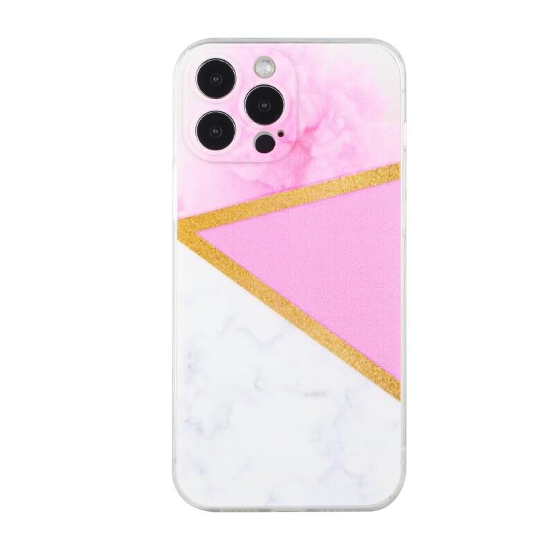 Θήκη τηλεφώνου TPU με ραφές από μάρμαρο για iPhone 14 Pro Max (Ροζ)