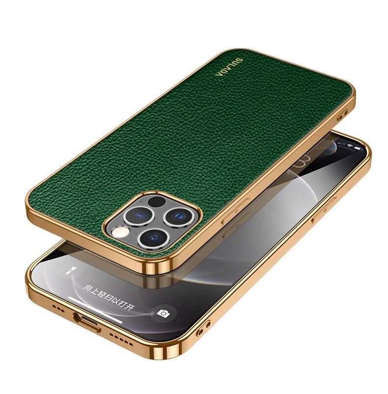 Θήκη κινητού τηλεφώνου SULADA για iPhone 14 Pro Max, ανθεκτική στις κρούσεις, από TPU + δέρμα χειροποίητο (Πράσινο) (SULADA)