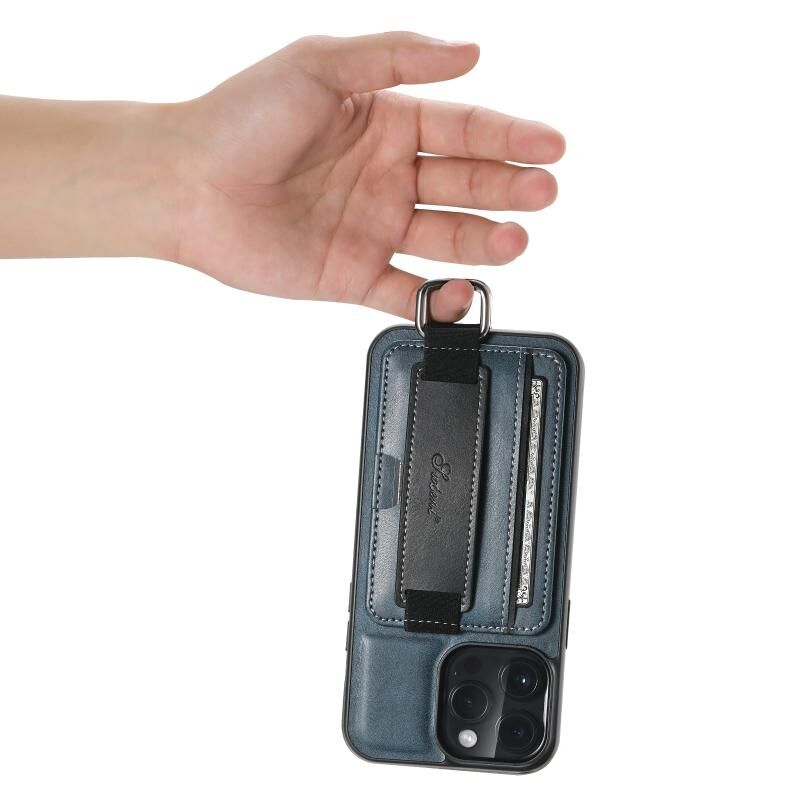 Θήκη κινητού τηλεφώνου Suteni H13 για iPhone 14 Pro Max από PU με κάρτες και λουρί καρπού (Μαύρο) (Suteni)