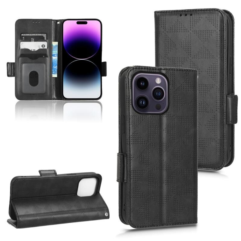 For iPhone 14 Pro Max Symmetrical Triangle Leather Phone Case(Black)