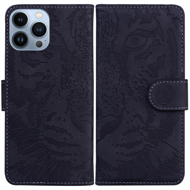Θήκη τηλεφώνου δερμάτινη με ανάγλυφο μοτίβο τίγρης για iPhone 14 Pro Max (Μαύρο)