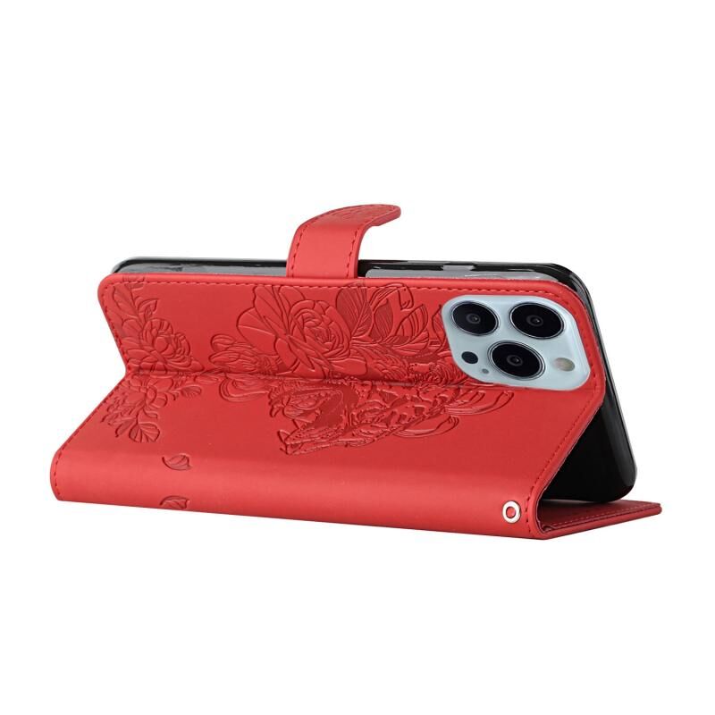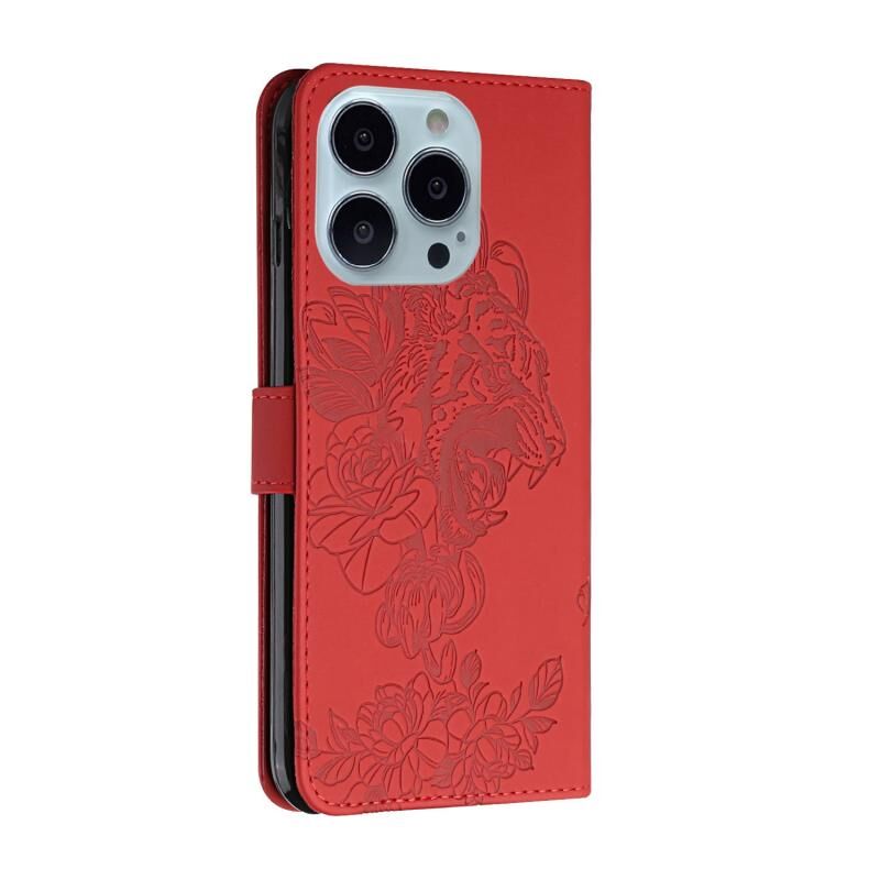 Θήκη τηλεφώνου δερμάτινη με ανάγλυφο λουλουδιού τίγρη για iPhone 14 Pro Max (Ροζ)