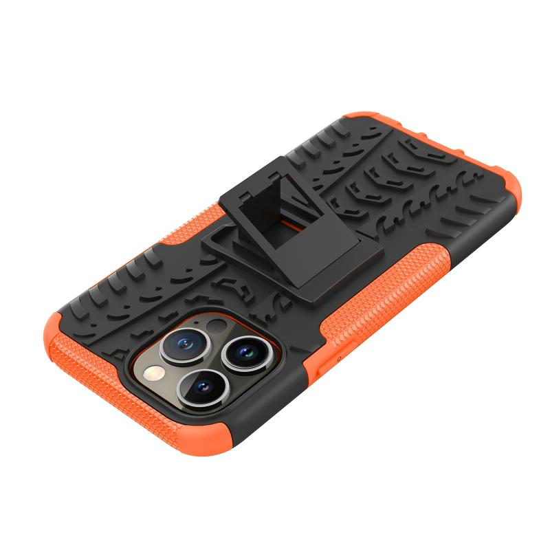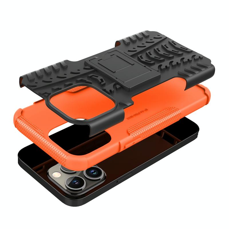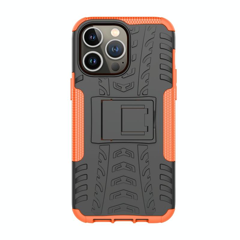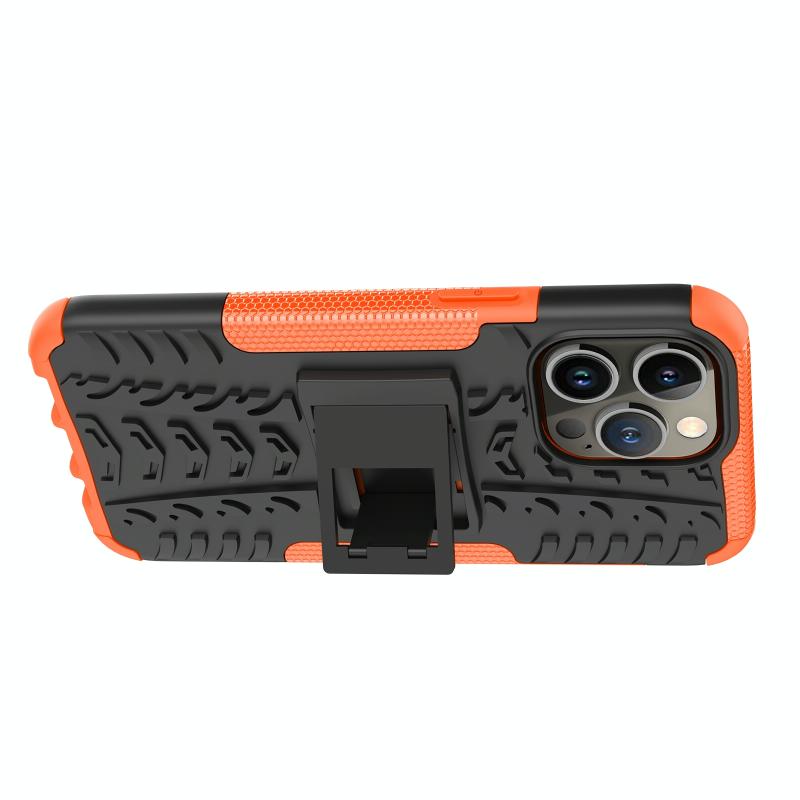 Θήκη κινητού για iPhone 14 Pro Max με υφή ελαστικού + PC και βάση στήριξης (Πορτοκαλί)