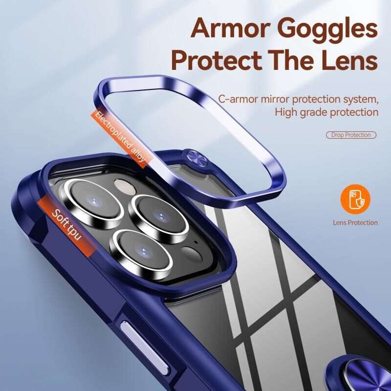 Θήκη τηλεφώνου για iPhone 14 Pro Max από TPU + PC με προστασία φακού και δακτύλιο στήριξης (Μαύρο)