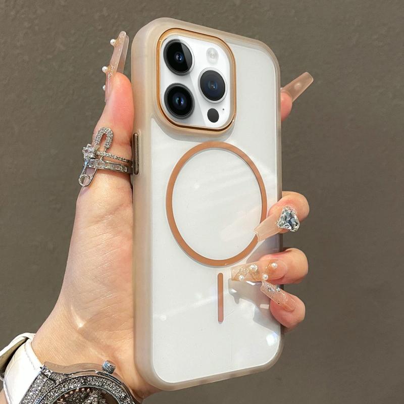 For iPhone 14 Pro Max Translucent Armor MagSafe N52 Thin Circle Phone Case(Transparent Gold)