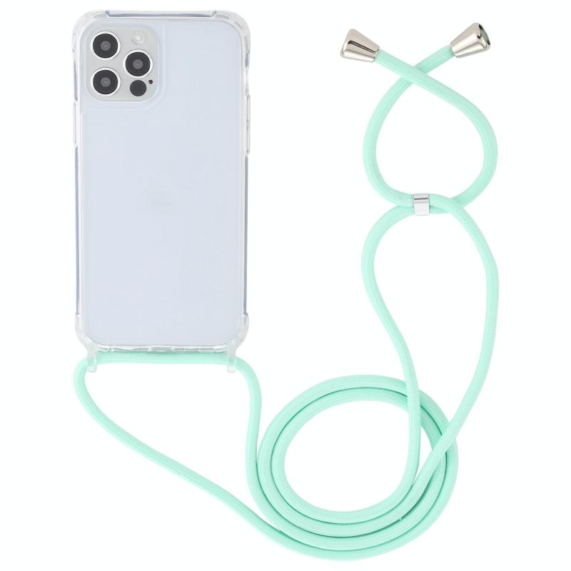Θήκη προστασίας κινητού τηλεφώνου για iPhone 14 Pro Max, διαφανές ακρυλικό, αντικραδασμική με αερόσακο και κορδόνι (Μέντας πράσινο)