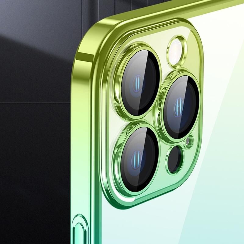 For iPhone 14 Pro Max Transparent Electroplated PC Gradient Phone Case (Blue Purple)