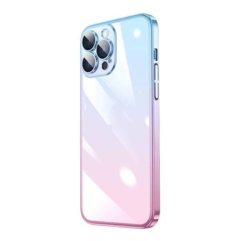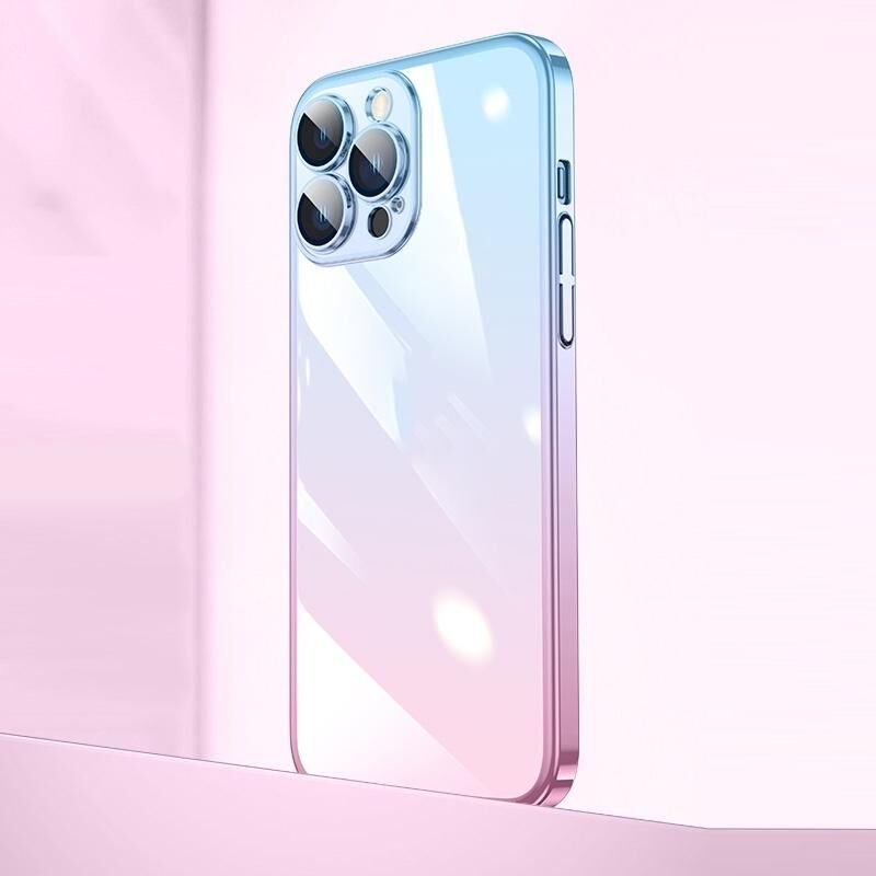 For iPhone 14 Pro Max Transparent Electroplated PC Gradient Phone Case (Pink Blue)