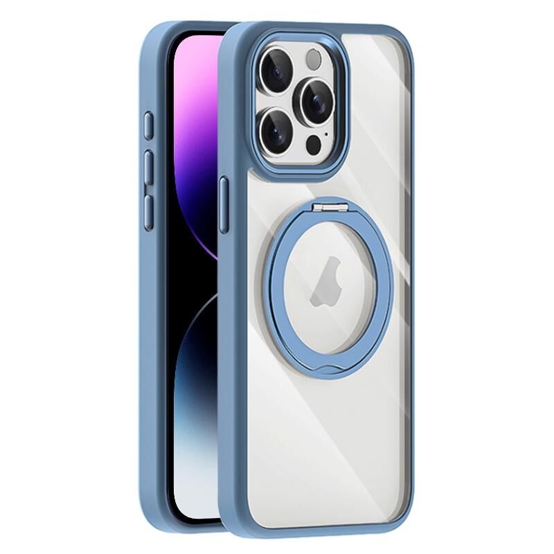 For iPhone 14 Pro Max Transparent MagSafe Magnetic Holder Phone Case(Light Blue)