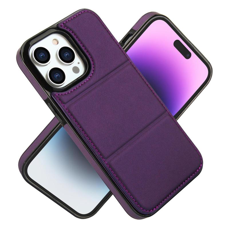 For iPhone 14 Pro Max Tri-fold Holder Leather Phone Case with Card Slot(Dark Purple)
