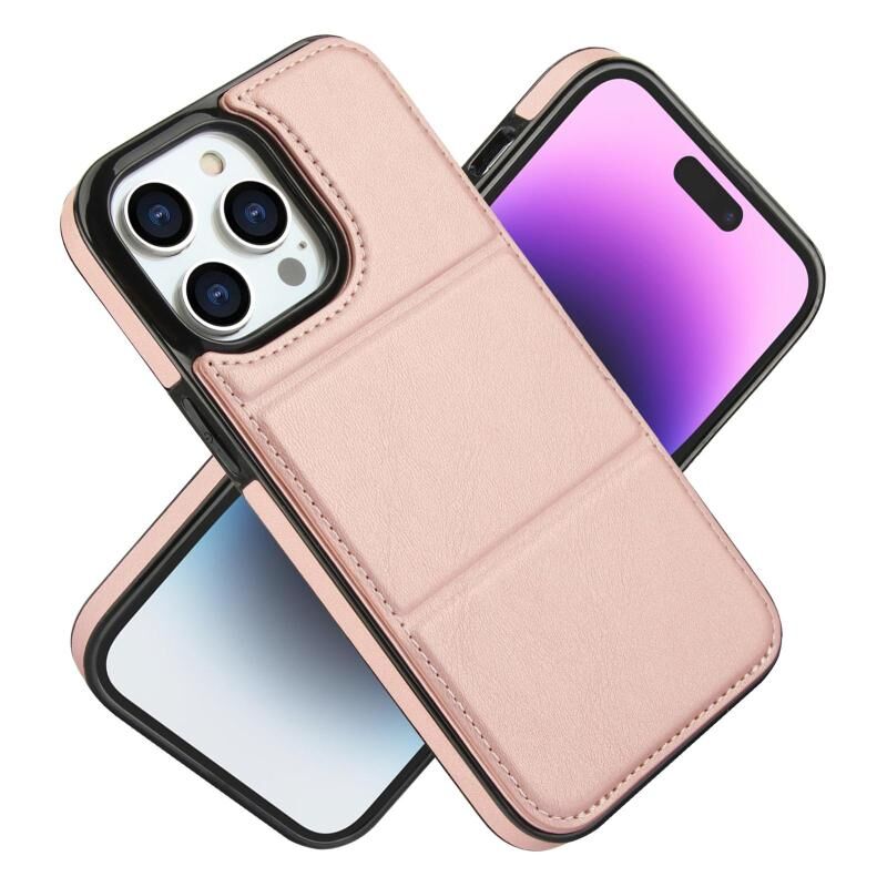 For iPhone 14 Pro Max Tri-fold Holder Leather Phone Case with Card Slot(Rose Gold)