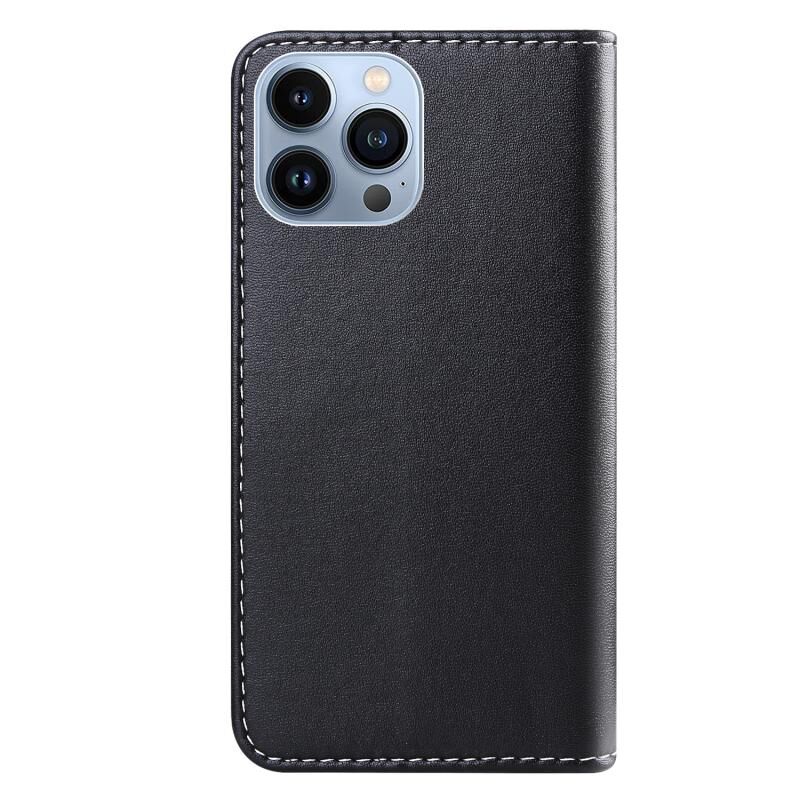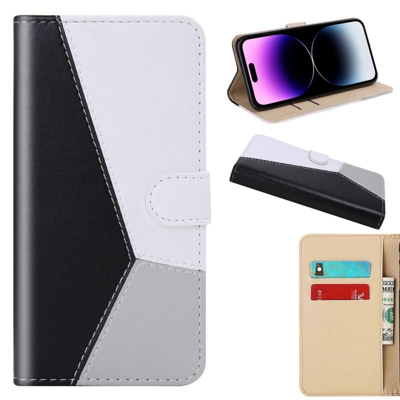Θήκη τηλεφώνου από δέρμα με πτερύγιο για iPhone 14 Pro Max, με τριχρωμία ραφής (Γκρι)