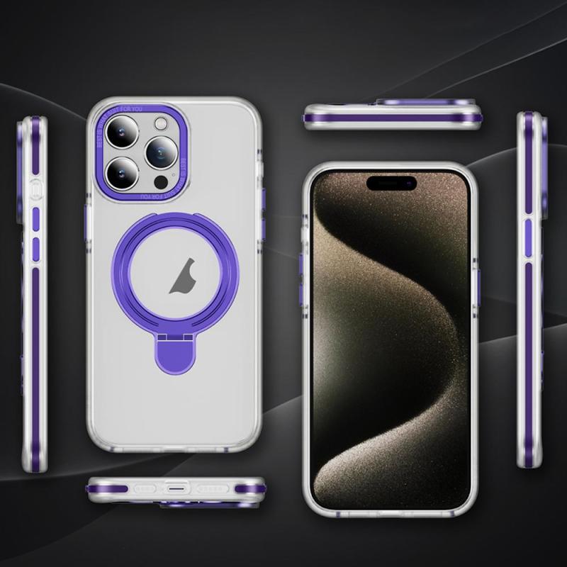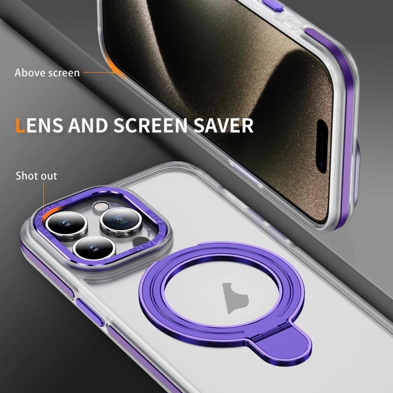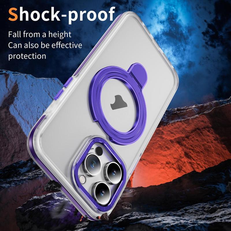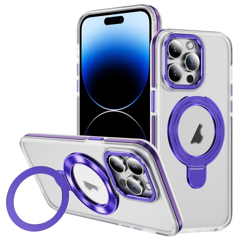 For iPhone 14 Pro Max Two Color TPU Hybrid Acrylic MagSafe Magnetic Holder Phone Case(Purple)