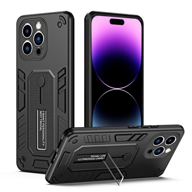 For iPhone 14 Pro Max Variety Brave Armor Finger Loop Holder Phone Case(Black)