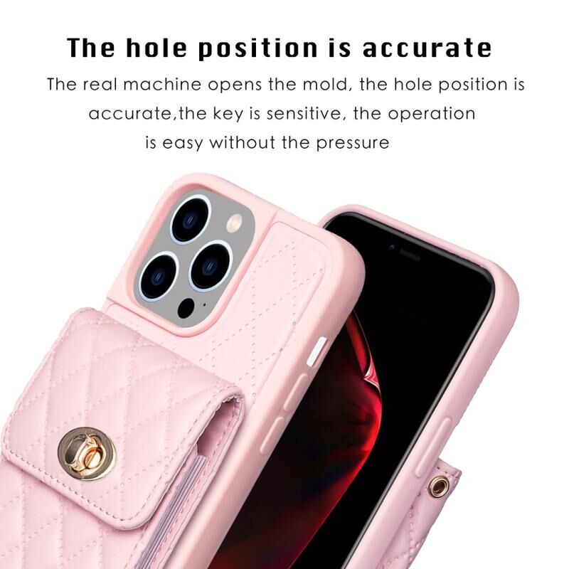 Θήκη τηλεφώνου από δέρμα με ρόμβους και μεταλλική αγκράφα για iPhone 14 Pro Max (Ροζ)