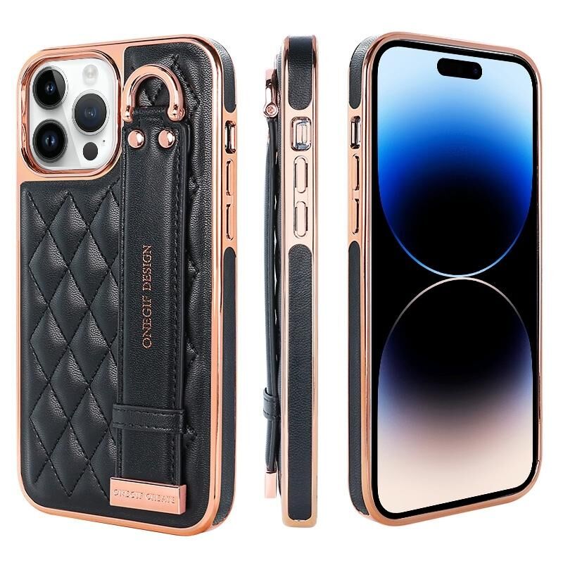 For iPhone 14 Pro Max VIETAO Rhombic Texture Wristband PU Phone Case(Black) (VIETAO)