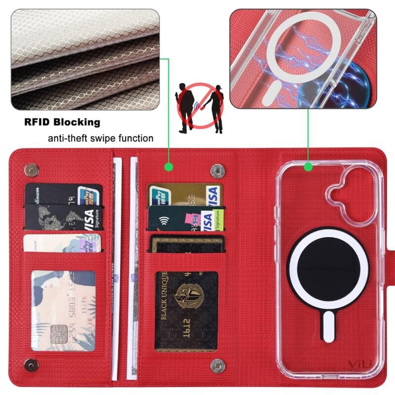 For iPhone 14 Pro Max ViLi GHA-C Series RFID MagSafe Magnetic Flip Leather Phone Case(Red) (ViLi)