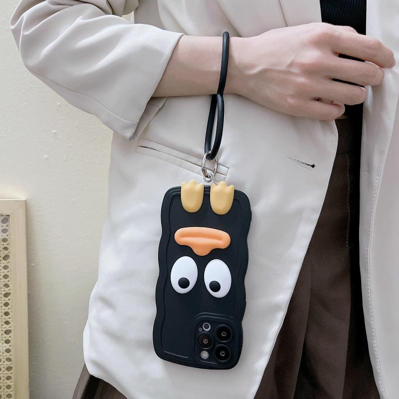 Θήκη σιλικόνης για iPhone 14 Pro Max με κυματιστό περίγραμμα, μεγάλο σχέδιο πάπιας και λουρί καρπού (πράσινο)