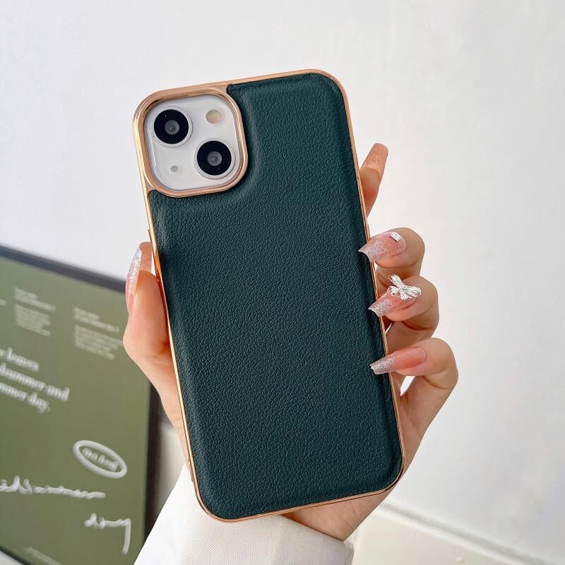 Θήκη τηλεφώνου από γνήσιο δέρμα με νανο-επίχρυση, σειρά Waves για iPhone 14 Pro Max (Μαύρο)