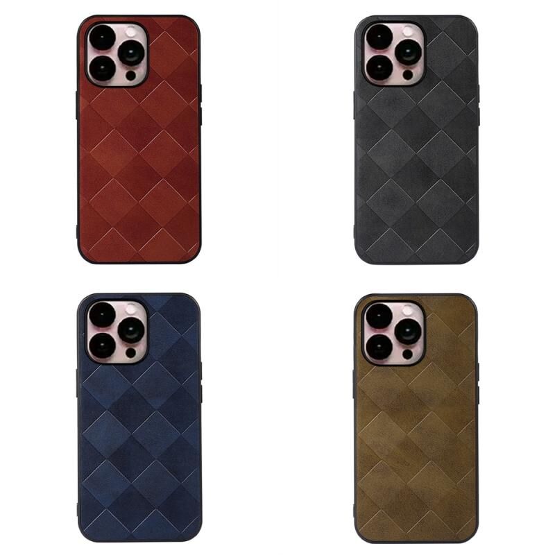 Θήκη τηλεφώνου για iPhone 14 Pro Max με ύφανση καρό από PU (Μαύρο)