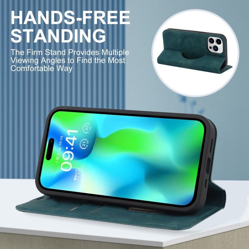 Θήκη τηλεφώνου δερμάτινη με MagSafe για iPhone 14 Pro Max, ασύρματη φόρτιση (Μαύρο)