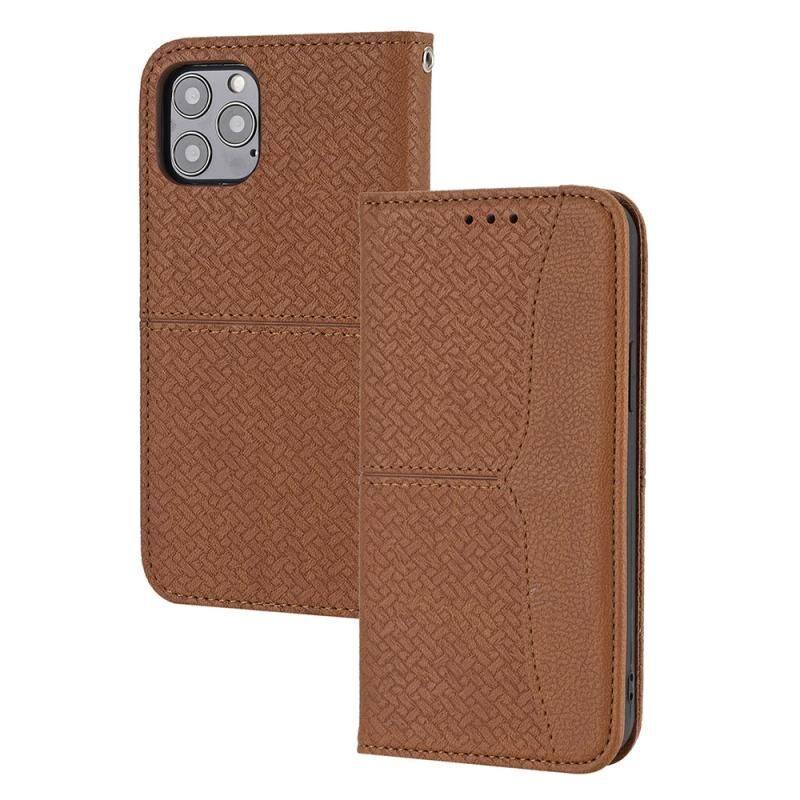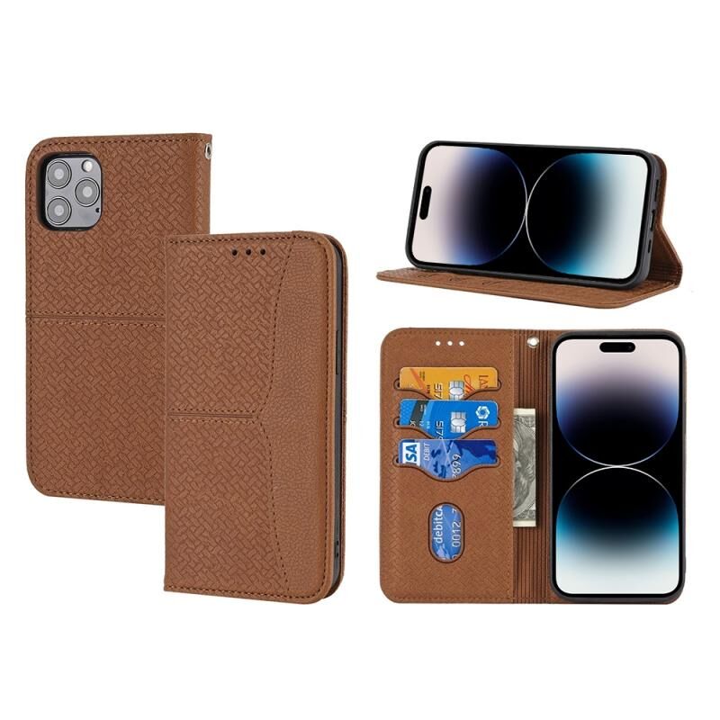 Θήκη δέρματος με υφαντή υφή για iPhone 14 Pro Max (Καφέ)
