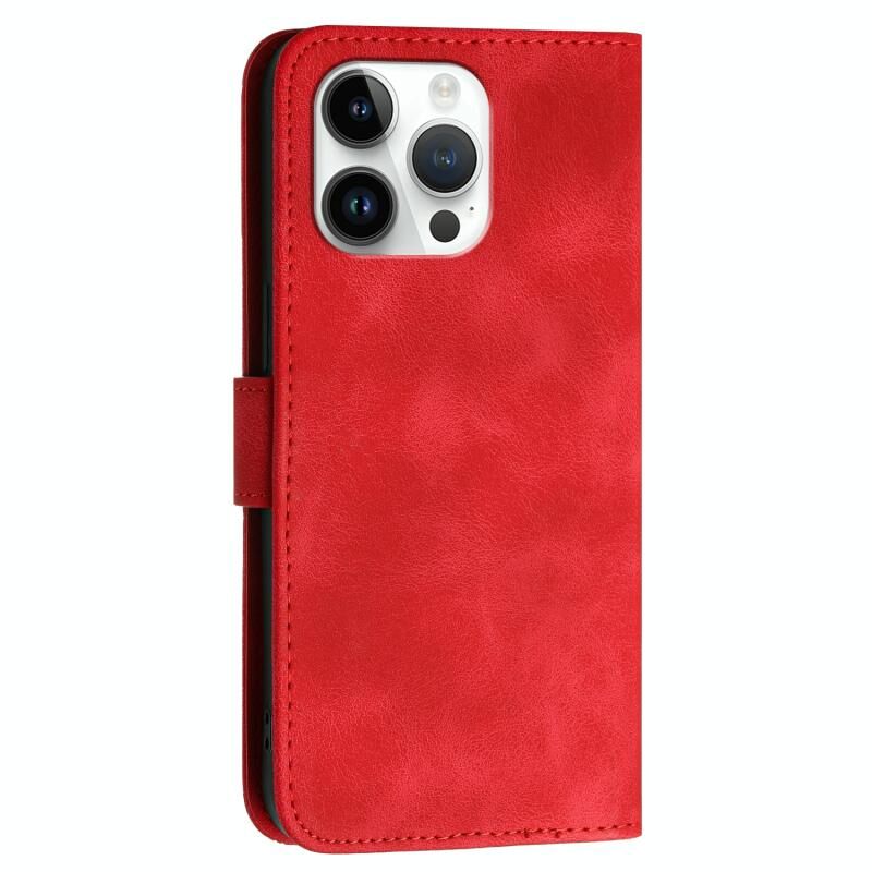For iPhone 14 Pro Max YX0080 Grid Butterfly Embossed Pattern Flip Leather Phone Case with Lanyard(Red)