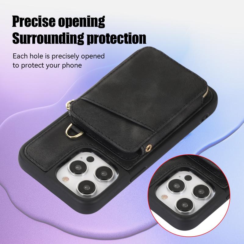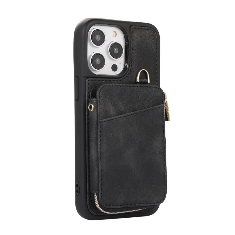 For iPhone 14 Pro Max Zipper Card Bag Back Cover Phone Case(Black)