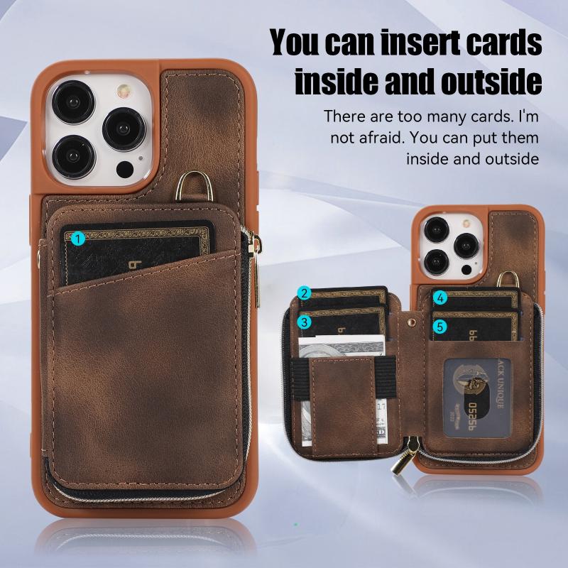 For iPhone 14 Pro Max Zipper Card Bag Back Cover Phone Case(Brown)