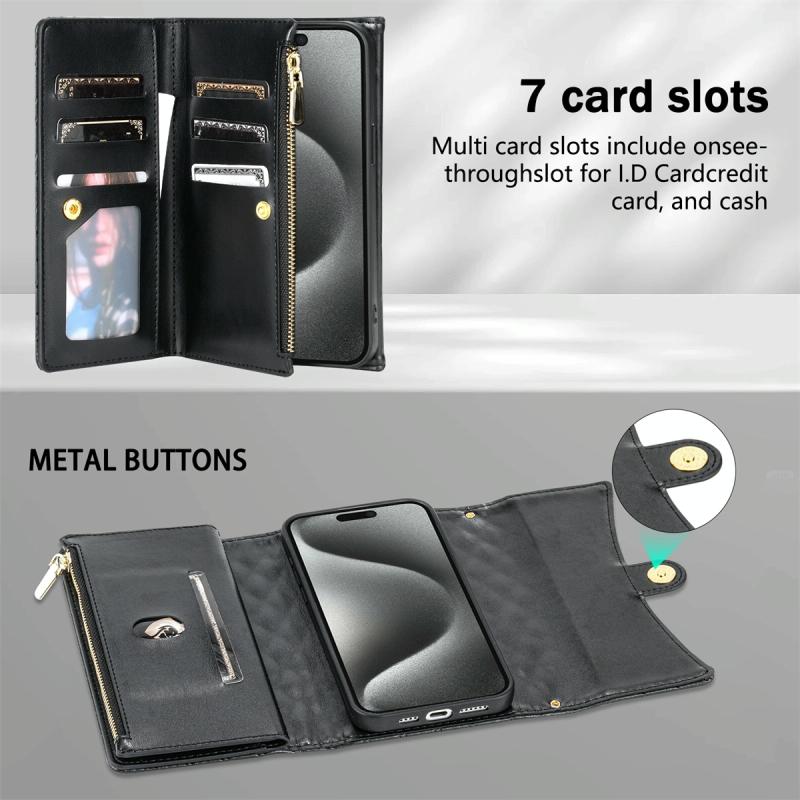 5. Λειτουργία Πορτοφελιού Πολλαπλών Καρτών: Θήκη για κάρτες και τσέπη πορτοφολιού με φερμουάρ και θήκη για μετρητά, μπορεί να αποθηκεύσει τις πιστωτικές σας κάρτες, μετρητά ή μικρά χαρτονομίσματα που χρειάζεστε καθημερινά.