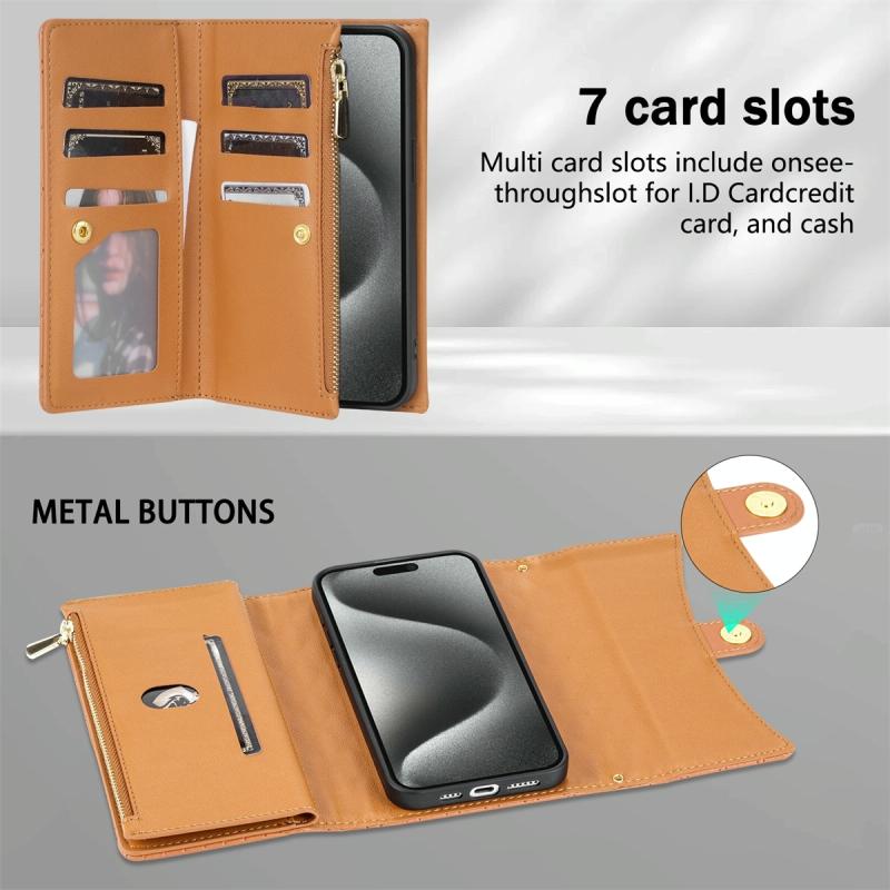 5. Λειτουργία Πορτοφολιού Πολλαπλών Καρτών: Θήκη για κάρτες και τσέπη πορτοφολιού με φερμουάρ και θήκη για μετρητά, μπορούν να αποθηκεύσουν τις πιστωτικές σας κάρτες, μετρητά ή μικρά χαρτονομίσματα που χρειάζεστε καθημερινά.