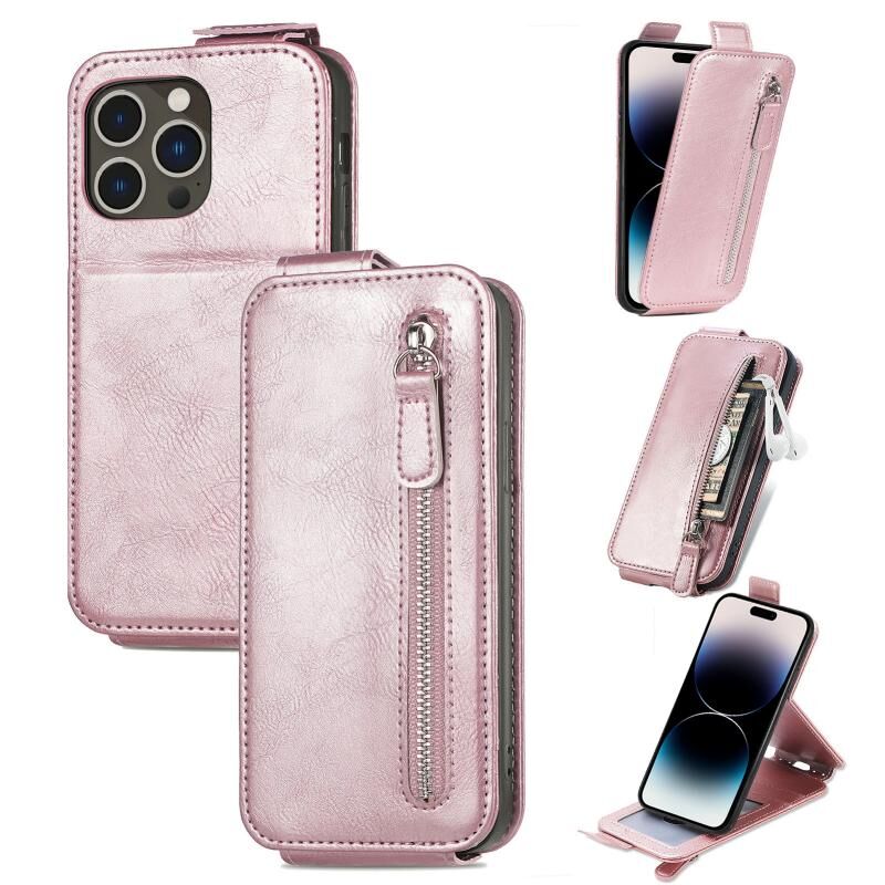 Θήκη τηλεφώνου δερμάτινη κάθετη με φερμουάρ για iPhone 14 Pro Max (Μαύρο)
