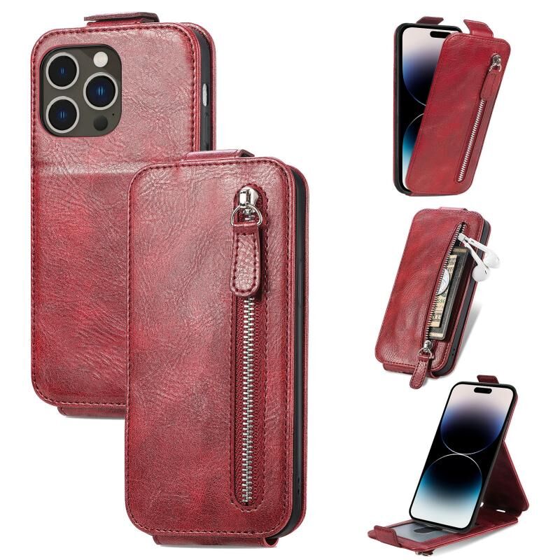 Θήκη τηλεφώνου δερμάτινη κάθετη με φερμουάρ για iPhone 14 Pro Max (Μαύρο)