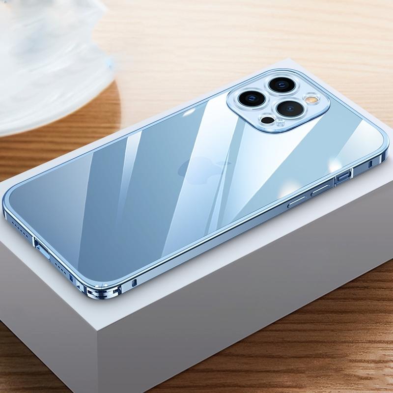 For iPhone 14 Pro Metal Frame HD Transparent Phone Case(Sierra Blue)